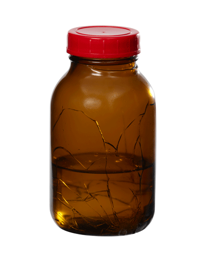Evita que el frasco se rompa en caso de rotura del vidrio, así como la formación de astillas y el derrame de la muestra. Inserto de PTFE en el tapón, por lo tanto inerte y especialmente estanco.