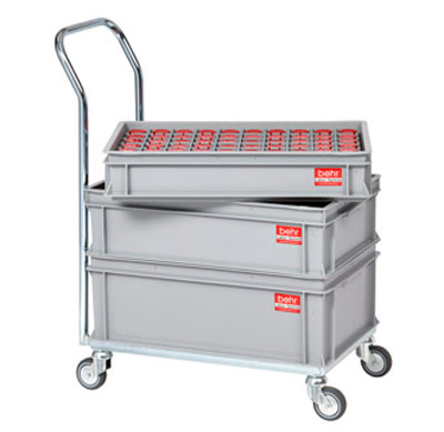Práctico, ligero y estable, ofrece un soporte seguro para los contenedores de almacenamiento y transporte behrotest® durante el transporte.